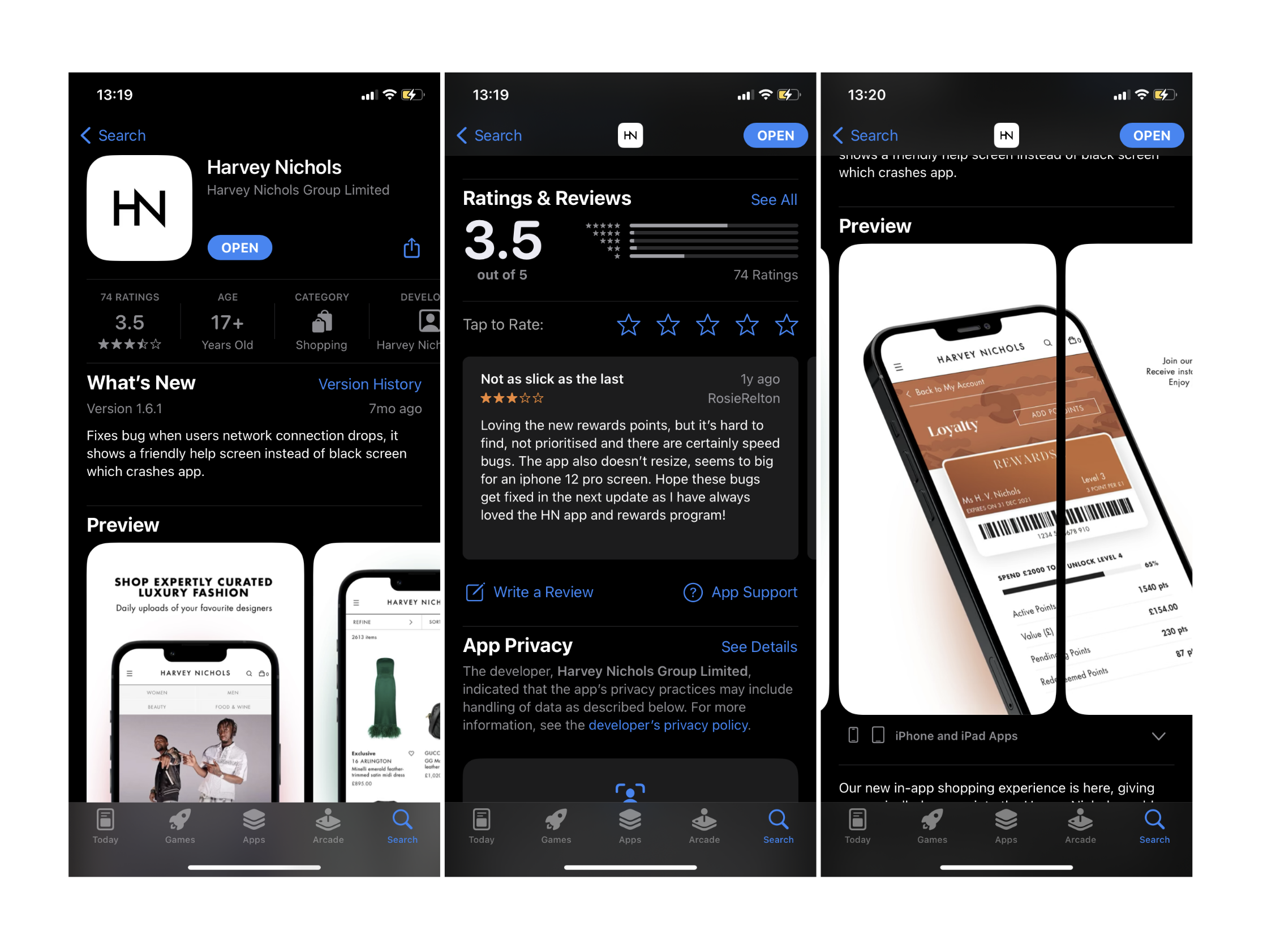 Before this initiative, Harvey Nichols did not have a transactional native app. To kickstart the project, a third-party company provided a basic native app template. As the Senior Product Designer, I led the project through various stages to ensure the final product was perfectly aligned with the Harvey Nichols brand and delivered a satisfactory user experience.